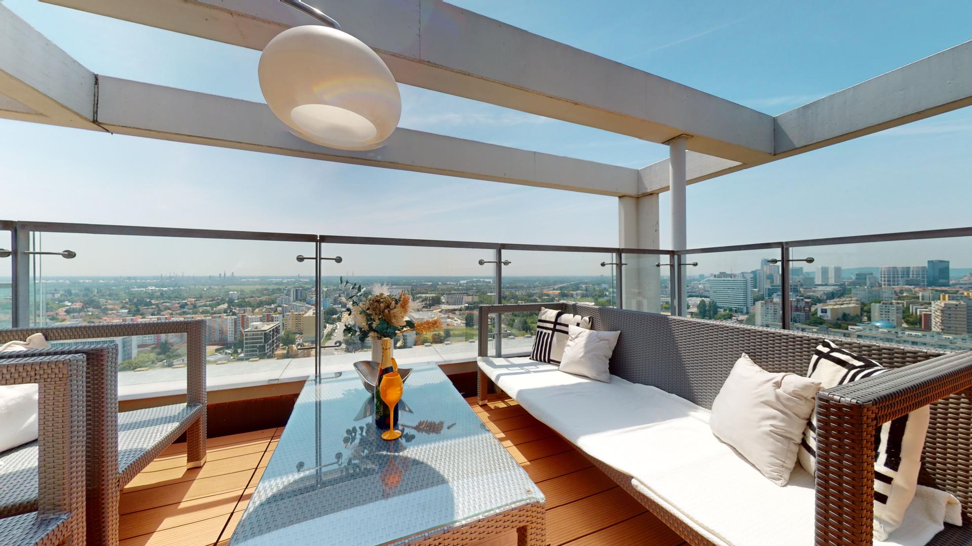 Príbeh tohto prémiového penthousu na najvyššom poschodí obytnej veže nad obchodným domom Retro sa síce začal už asi pred desiatimi rokmi, takže to nebola úplná novostavba v čase predaja, ale vďaka výbornej dispozícii, nadčasovému zariadeniu, bonusov vo forme dvoch vnútorných parkovacích miest, klimatizácie, či spálne s vlastným šatníkom, en suite kúpeľňou s dostatočným súkromím a zároveň panoramatickým výhľadom na Bratislavu, si počas procesu predaja získal okamžite pozornosť viacerých záujemcov.